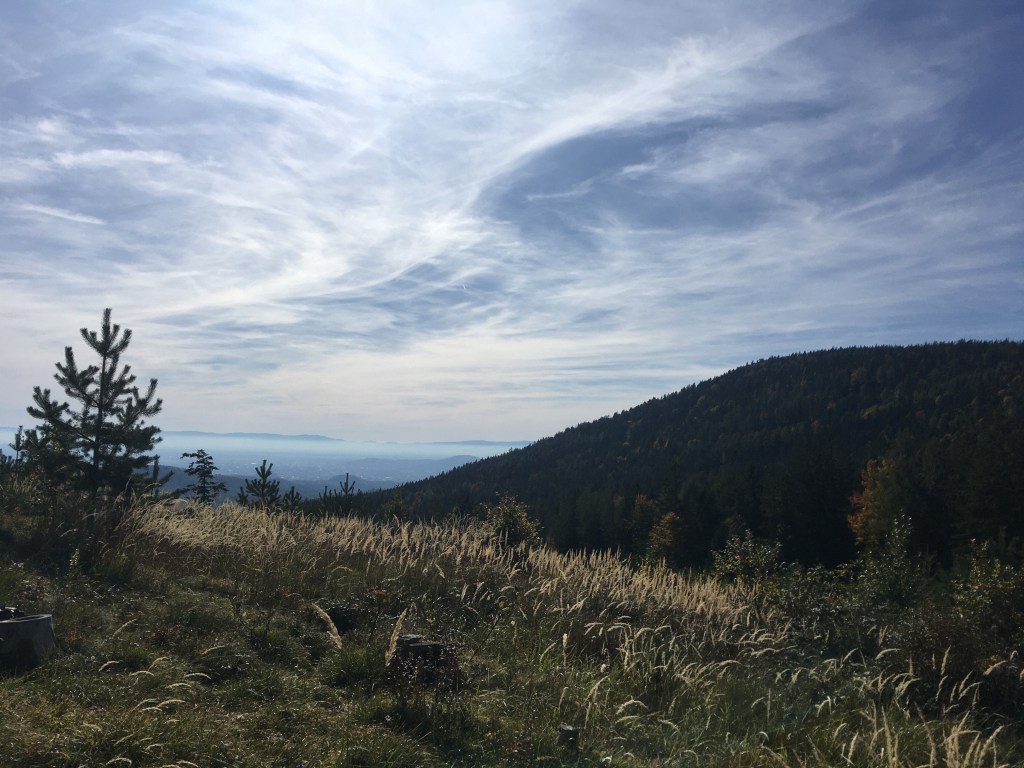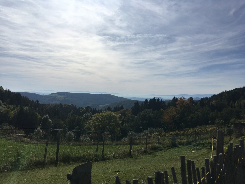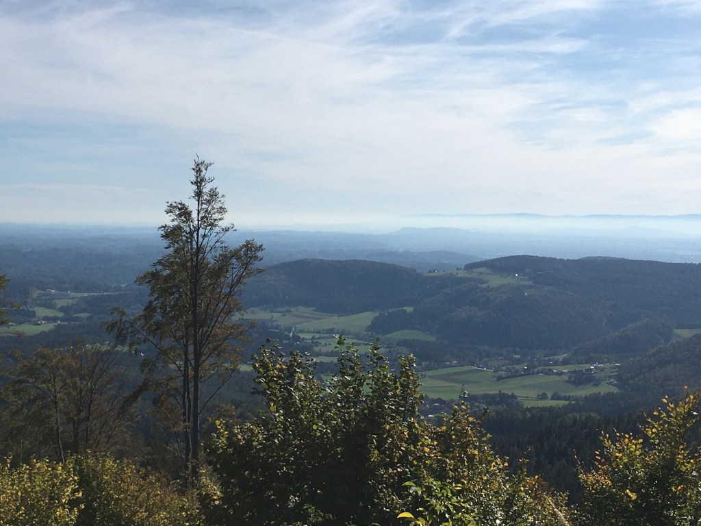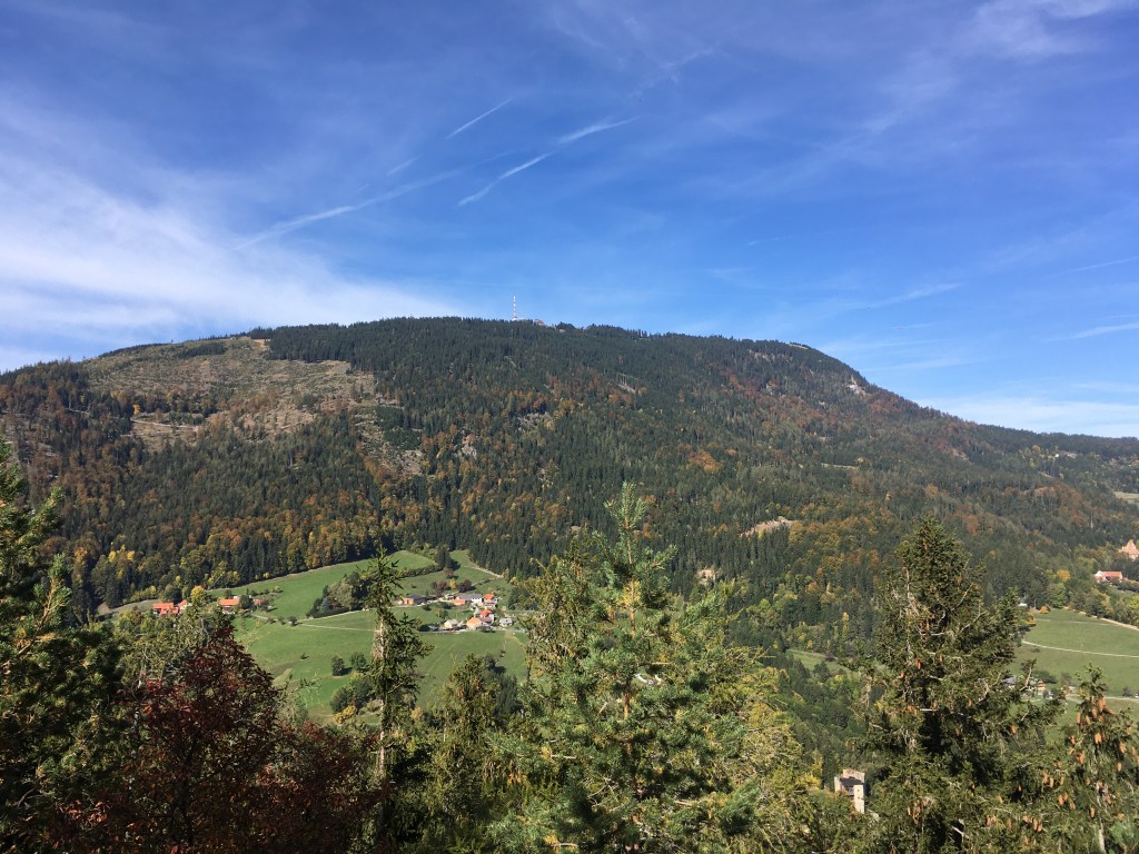 This is a great little hike just 20 mins from Graz with beautiful views for not too much effort. It’s only 2.7 km long and 170 m elevation climb. The whole family can do this, although it is a little steep in parts coming back down. The trail goes up a wide path through the woods to several clearings at the top with views across to the Schöckl on one side and across Graz on the other. After a rest top at the Novystein obelisk, the trail comes back down through the woods and a final few minutes along the road back to the start. About an hour round trip non stop. There are benches to sit on at the top.