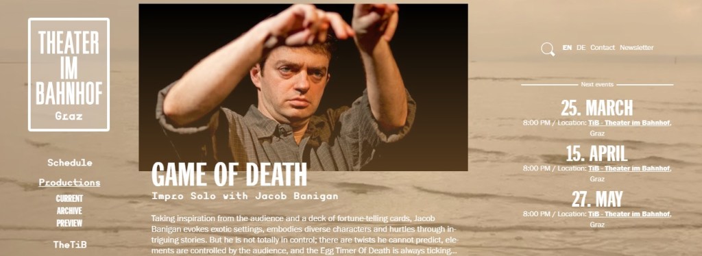 ‘Game of Death’ is a really fun monthly improvisation show at the small Theater am Banhof. The talented Canadian Jacob Banigan asks the audience questions and based on their answers he performs a series of hillarious short scenes with of course at some point a sudden death. Plus it’s all in English!