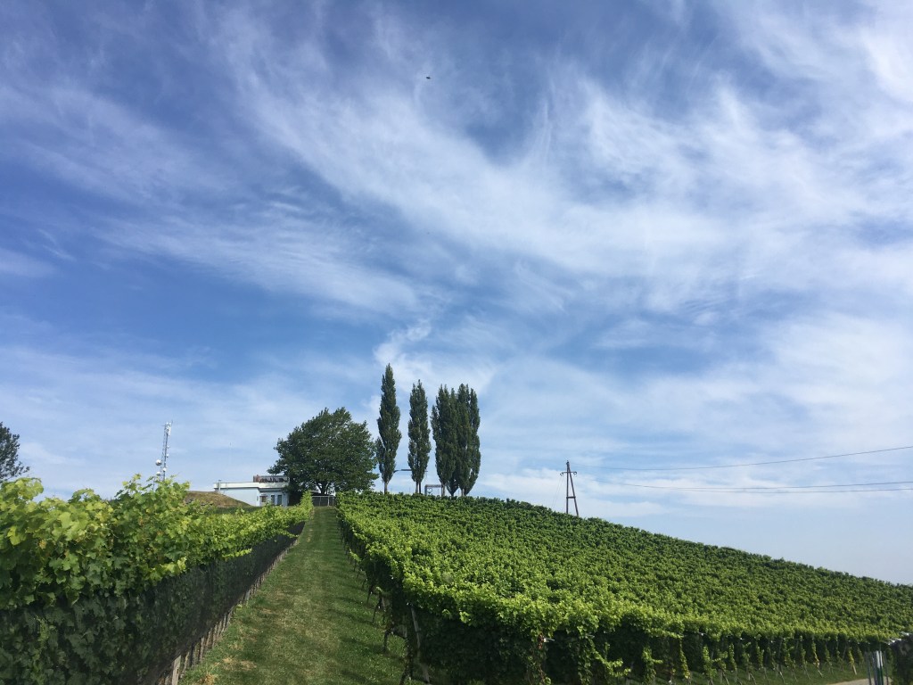 After a short while, you will head through the woods which has steep downhill slopes – these can be slippery, especially if it has been raining, so wear good shoes! You will appear into the vineyards again, and see your first buschenschank stop ‘ Adam Ewald’. This a nice place to stop if you have children as they have table tennis, football table and small playground. It’s a pretty garden but no real views. So continue onto a further buschenschank if you want to relax with a view of the vineyards.
