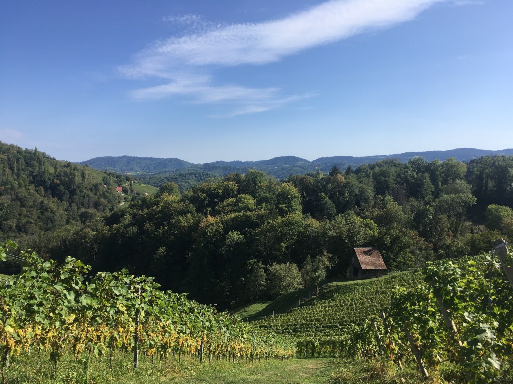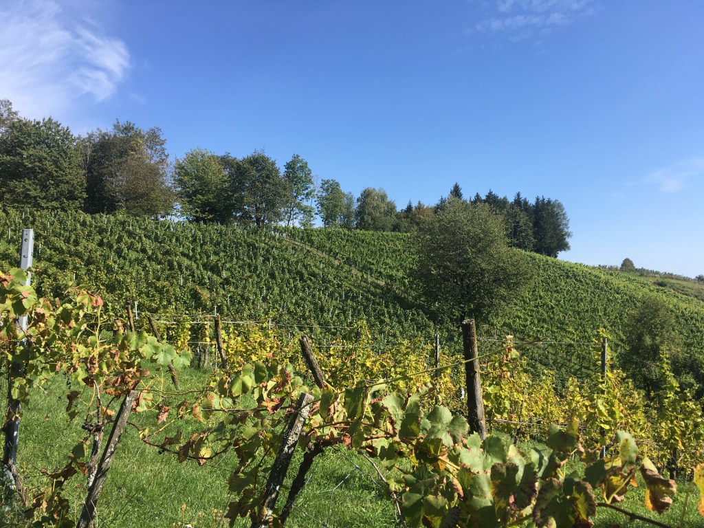 Many hikes are along roads, but we discovered a great 10.6 km trail mostly through the vineyards and woods, with only short sections along roads – ‘Glanzer Weintour mit Weinkultur’, you can view a map on-line here with a list of all the buschenschanks on the way. The walk is circular so you can join at any point. It says 3 hours, but it’s a lot of up and down so I recommend 4 hours, including stops to admire the stunning views. And allow even more time if you plan to stop at buschenschanks along the way (check the opening times before you set out).