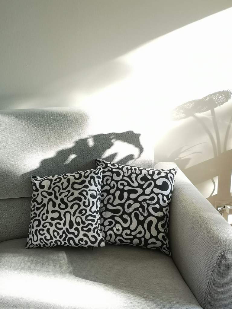 Coming out soon are samples of her new fabric collection of cushions and scarves (to be produced next year), printed by an Irish family run business using eco friendly pigment inks.