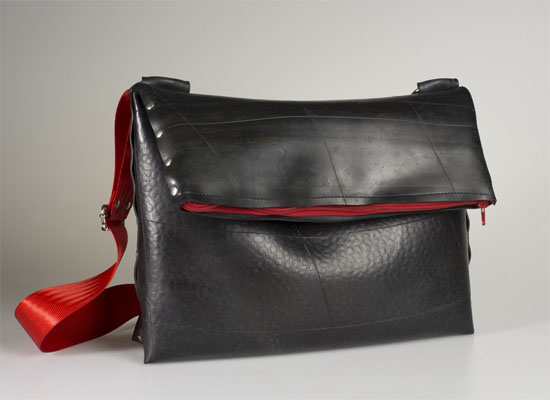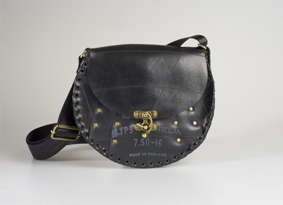 While living in Bristol, England, Katcha started designing and making stylish punk inspired bags and purses out of old inner tubes (cars, bikes, tractors, wheelbarrows! etc), as well as seatbelts and rubber floor mats. She incorporates traditional Spanish leatherworking patterns that she picked up from her time in Spain. Her bags have appeared on catwalks, in fashion magazines and belong to Brit award stars like David Bowie and Prince!