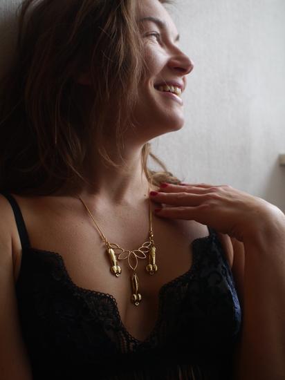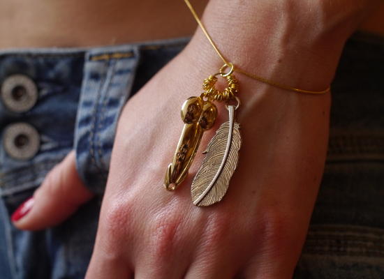 Katcha continues to design and produce bags here in Graz, as well as her latest venture- her cheeky ‘Dangly Bits’jewelry range. Showcasing her fun sense of humour, these subtle elegant 14-24k gold or sterling silver pieces will have people smiling when they look up close! Her necklaces and earrings can either be seen as a spirtual amulet (throughout history, cultures such as Ancient Rome and contemporary Thai Buddhism have recognised and wielded the protective power of the phallus). Or a fun provocative display of feminism and turning the theme of objectifying women on it’s head! They also come with delightful upcyled charms found or foraged by Katcha.