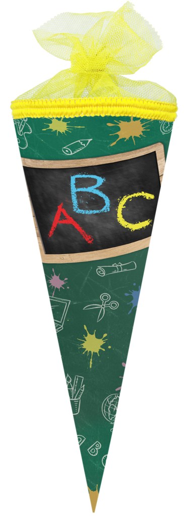 To “sweeten” the first of school, parents give their kids a giant cone filled with small things like little toys, sweets, fun stationary, a new water bottle, socks etc. This usually gets presented to them as they leave for school and they carry it with them (although some schools ask the kids not to bring them in). They then open them when school ends, after being picked up. You can buy these cones in Libro, Müller or Pagro or crafty parents can make them at home. (You only need to give a Schultüte on the first day of the first year).
