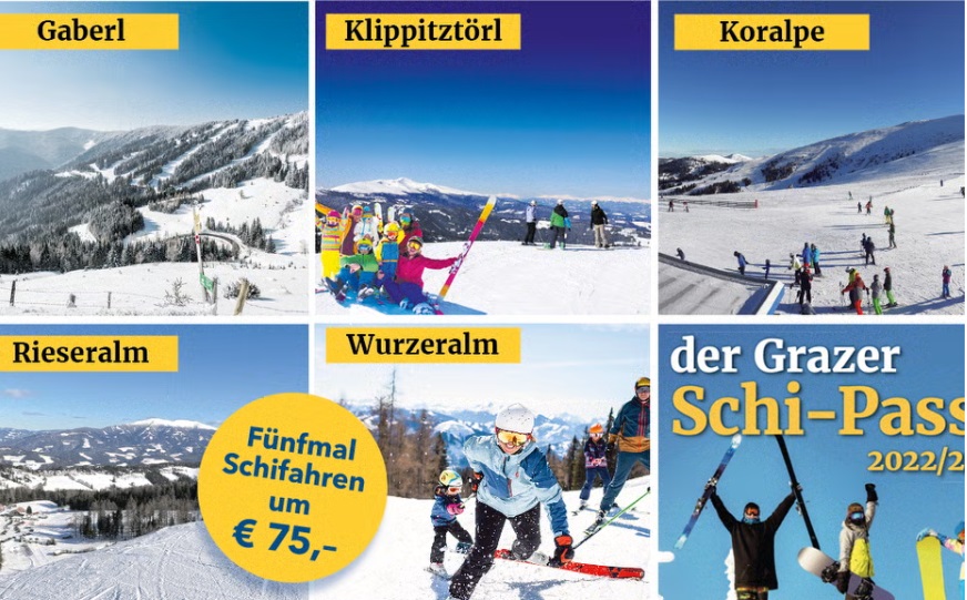 At the beginning of the ski season, Der Grazer offers a great deal ski pass for €75 (2022/23 price) for 1 day pass x 5 ski resorts. These sell out quickly!