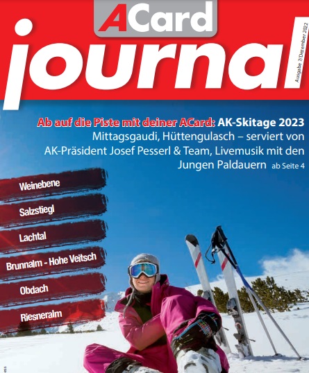 AK Members (Abeiterkammer) get 50% on special days at Weinebene, Salzstiegl, Lachtal, Obdach, Riesneralm and Brunnalm-Veitsch. There is free goulash soup for card holders at lunchtime and music entertainment. More details can be found in the ACard Journal that is mailed by post to all AK members.