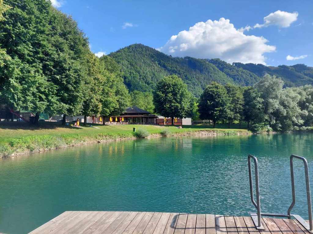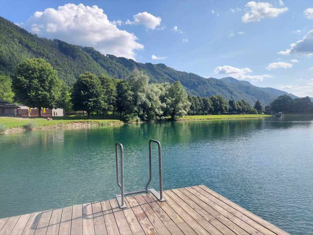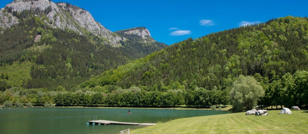 Tiebersee is just 30 mins by car from Graz, also reachable on weekdays by 100 bus to Röthelstein Ort in 1 hour. One of my favourite lakes near Graz, it’s surrounded by wooded hills and mountains. The grassy banks extend to the water’s edge, with plenty of room to spread out and there are lots of trees for shade. The water is warm enough to swim, it’s also a fun place to paddle board. There are also two cafes, a small playground, volleyball, basketball and football courts and table tennis.