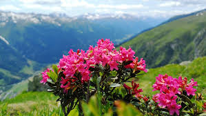 Visiting in July is a very pretty time as the pink Alpen Roses (short rhododendron bushes) are blooming everywhere.