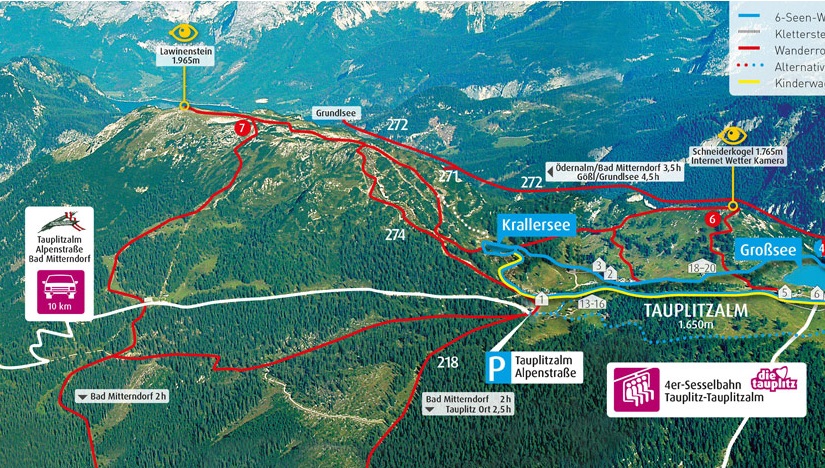 If you have parked in Tauplitz and taken the chair lift up, you can do a lovely walk back down the mountain which takes about 2 hours (I took the 275 path).