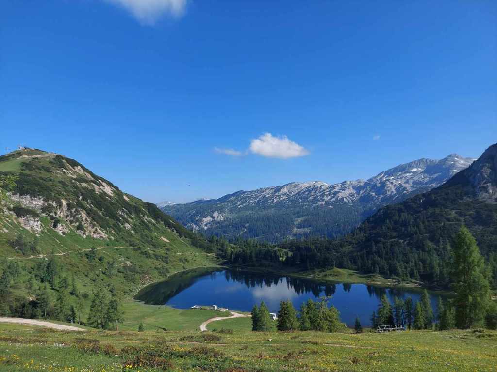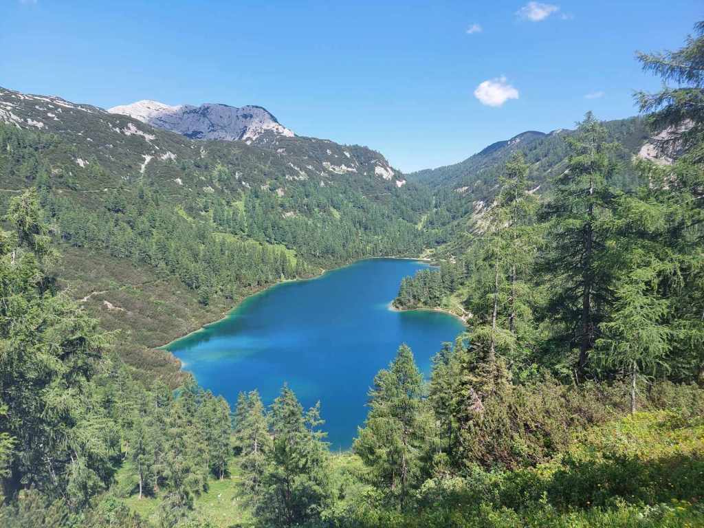 The popular ski resort in Tauplitz is also a great place to visit in the summer. It’s about 1.4 hours from Graz by car. Tauplitzalm on top of the mountain is a very pretty alpine pasture with small lakes and family friendly hikes. You can either drive with your car up the Alpenstraße (10 Km) €16 from Bad Mitterndorf . Or you can take the chairlift from Tauplitz village (€17 one way / €21 return). They can also transport prams, wheelchairs, bikes or dogs.