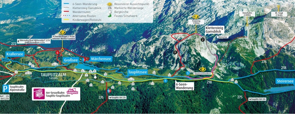 Also don’t miss the scenic lookout ‘Steirerseebankerl’ with a pretty view over the Steirersee (yellow eye symbol on map) also with useful benches for a picnic or a rest.
